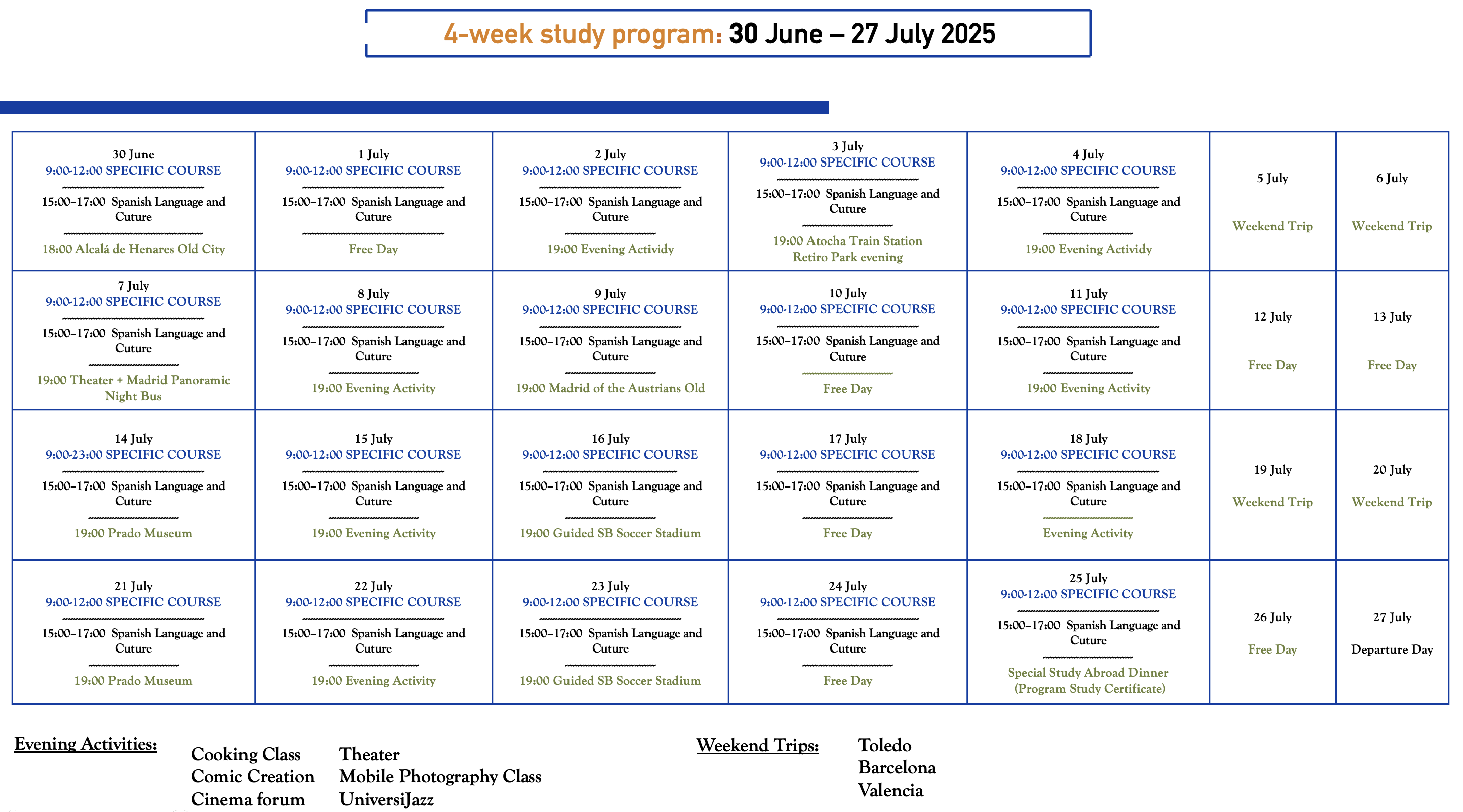 The program provides courses ranging from three to five weeks, taught in both Spanish and English, mainly in summer using a dynamic and innovative learning system.
